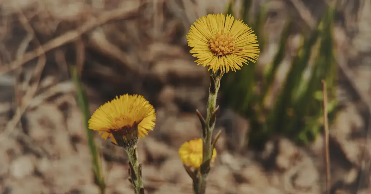 - Цветы: Ярко-желтые корзинки диаметром 2–3 см, напоминают одуванчик (цветет в марте–апреле).